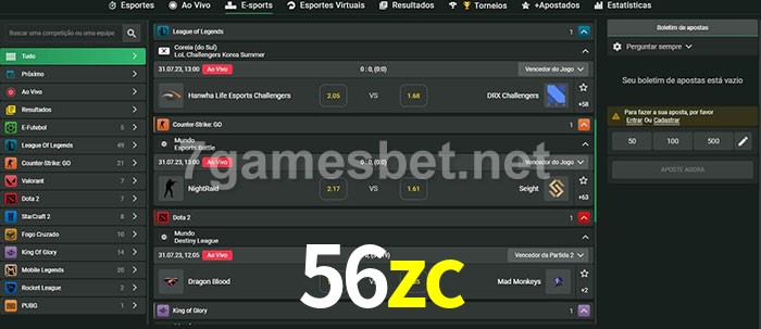 A aposta 56zc oferece aos jogadores a experiência mais conveniente de apostas em eSports!